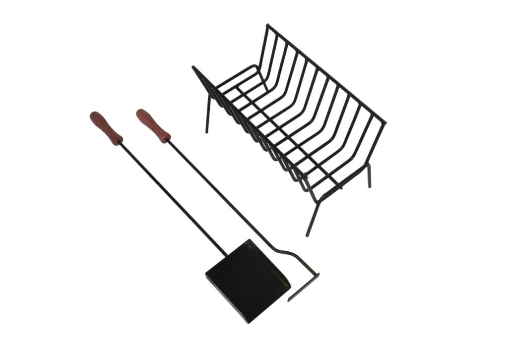 - Cunita/Leñero fabricado en hierro liso de 8 mm, pintado con pintura negra al horno para máxima resistencia. Ideal tanto para leña como para carbón. Muy resistente al fuego. Medidas: 25 cm de ancho × 45 cm de profundidad × 27 cm de alto.